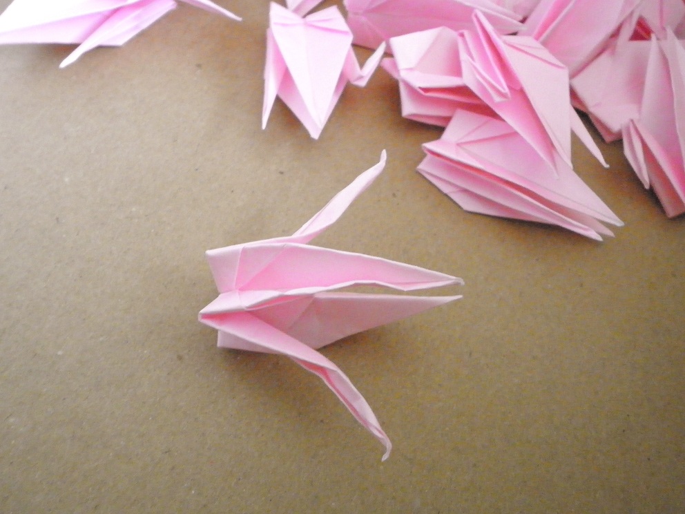 毎日願いを込めながら折っている千羽鶴。